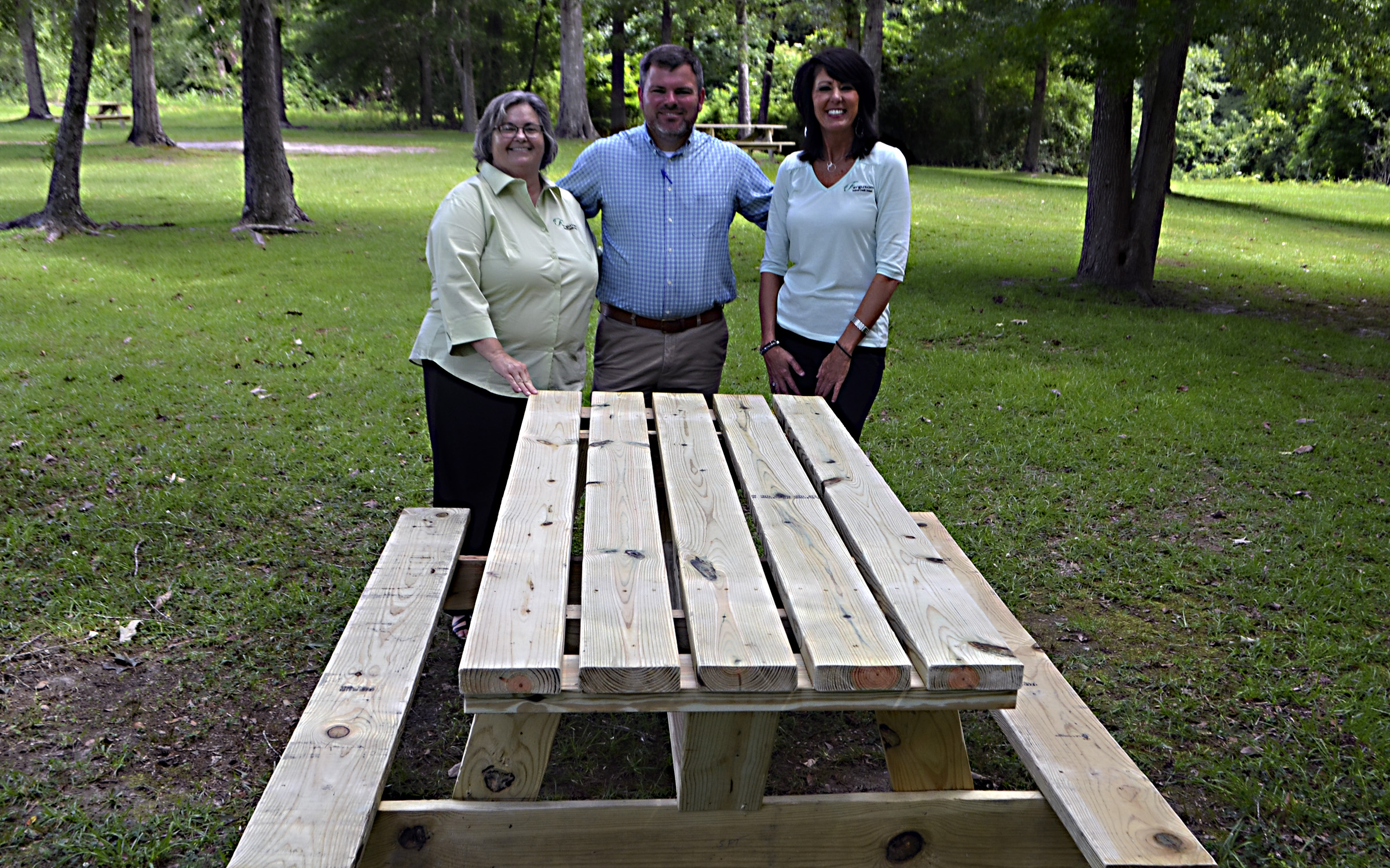 Ferguson Federal Credit Union recently donated four picnic tables to the city park, which overlooks the Pearl River.