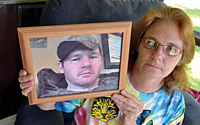 Pictured Above: In this file photo, Wanda King holds a photo of her son, Glenn Calvin Williams, who had been missing since 2015. King said cadaver dogs located what she is positive are her son’s remains. “I’m at peace,” she said. “Maybe now I can lie down at night.” | Photo by Mark Rogers