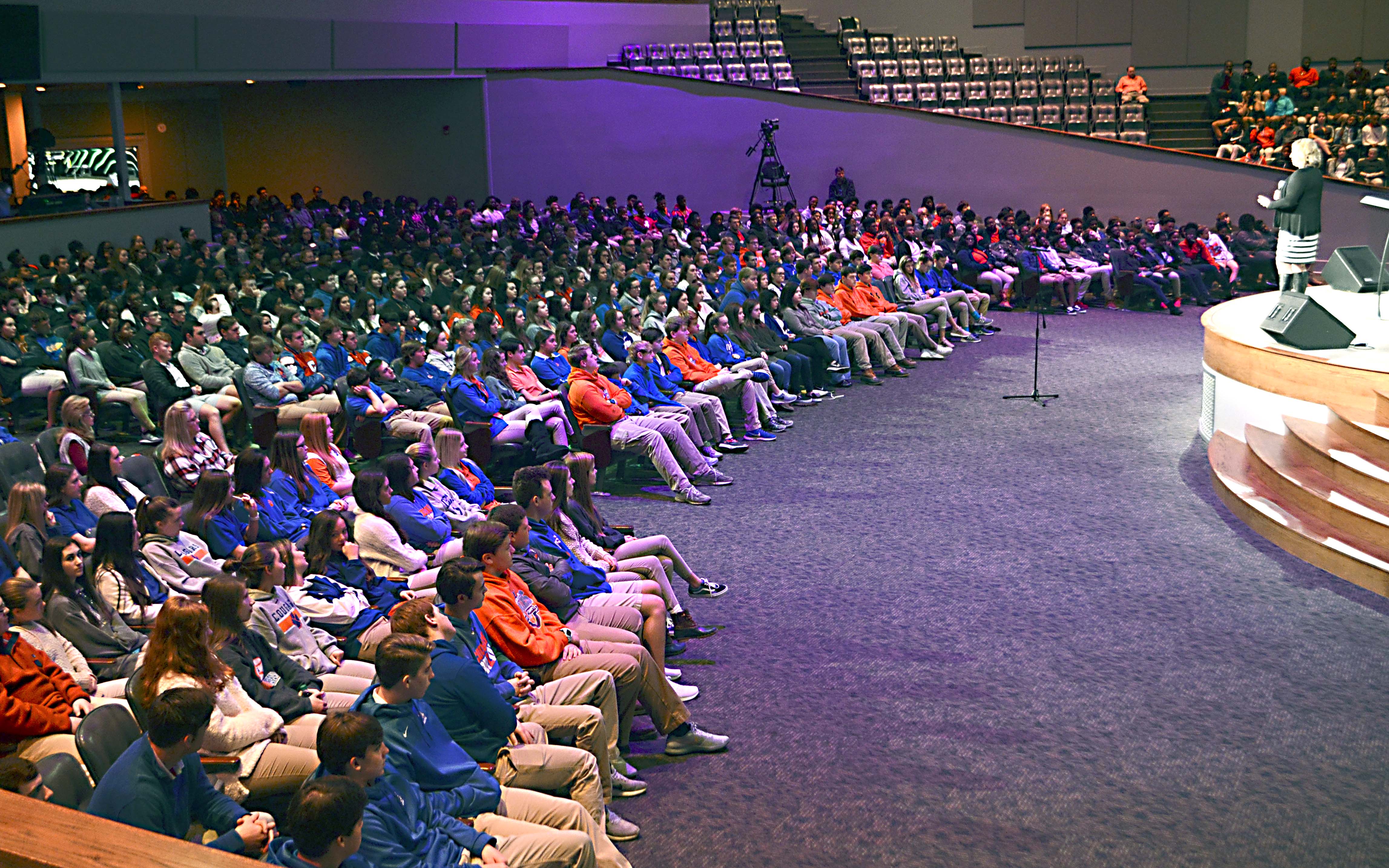 Middle school and high school students from Columbia, Columbia Academy, East Marion and West Marion all attended the sessions held at Woodlawn Church. On Tuesday, middle schoolers heard the presentation and on Wednesday, Tina Meier addressed hundreds of area high school students and their teachers.