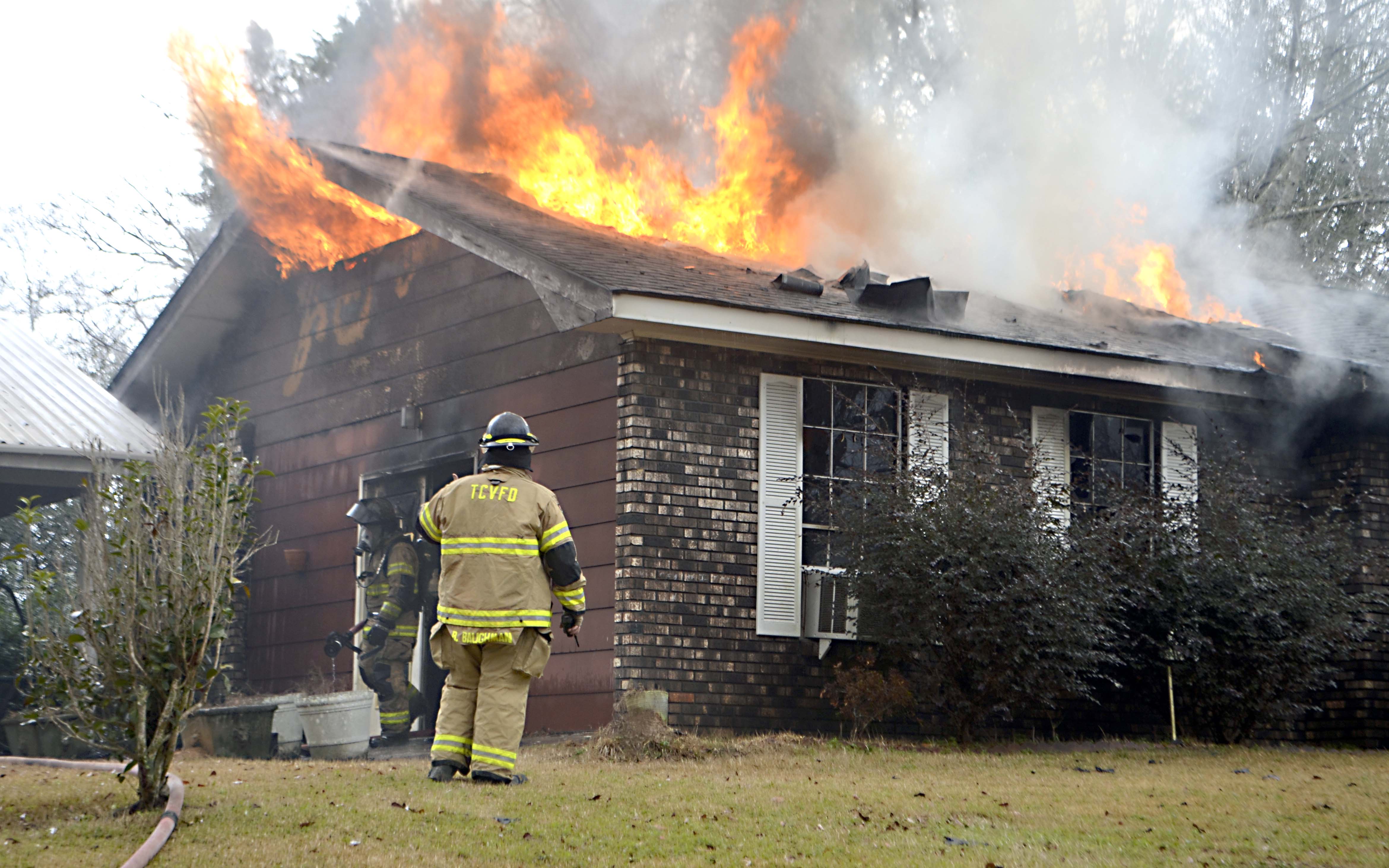 Shane Saucier was battling a blaze at 125 Dry Branch Road when the seals on his mask with his self contained breathing apparatus failed, allowing smoke to reach him as he and another firefighter mounted an interior attack.