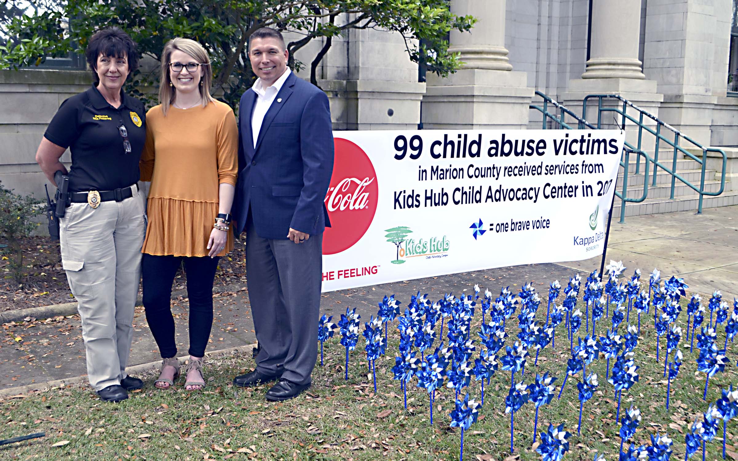 “We’re also planting them at First Southern Bank on U.S. 98 and First United Methodist Church,” Karie Chatham, community outreach coordinator for Kids Hub, said. “This year, we decided to plant them at every courthouse in the counties we serve. Marion is one of the counties we serve, so this courthouse will have 99 pinwheels to represent the children that we serviced in our center from here in 2017.”