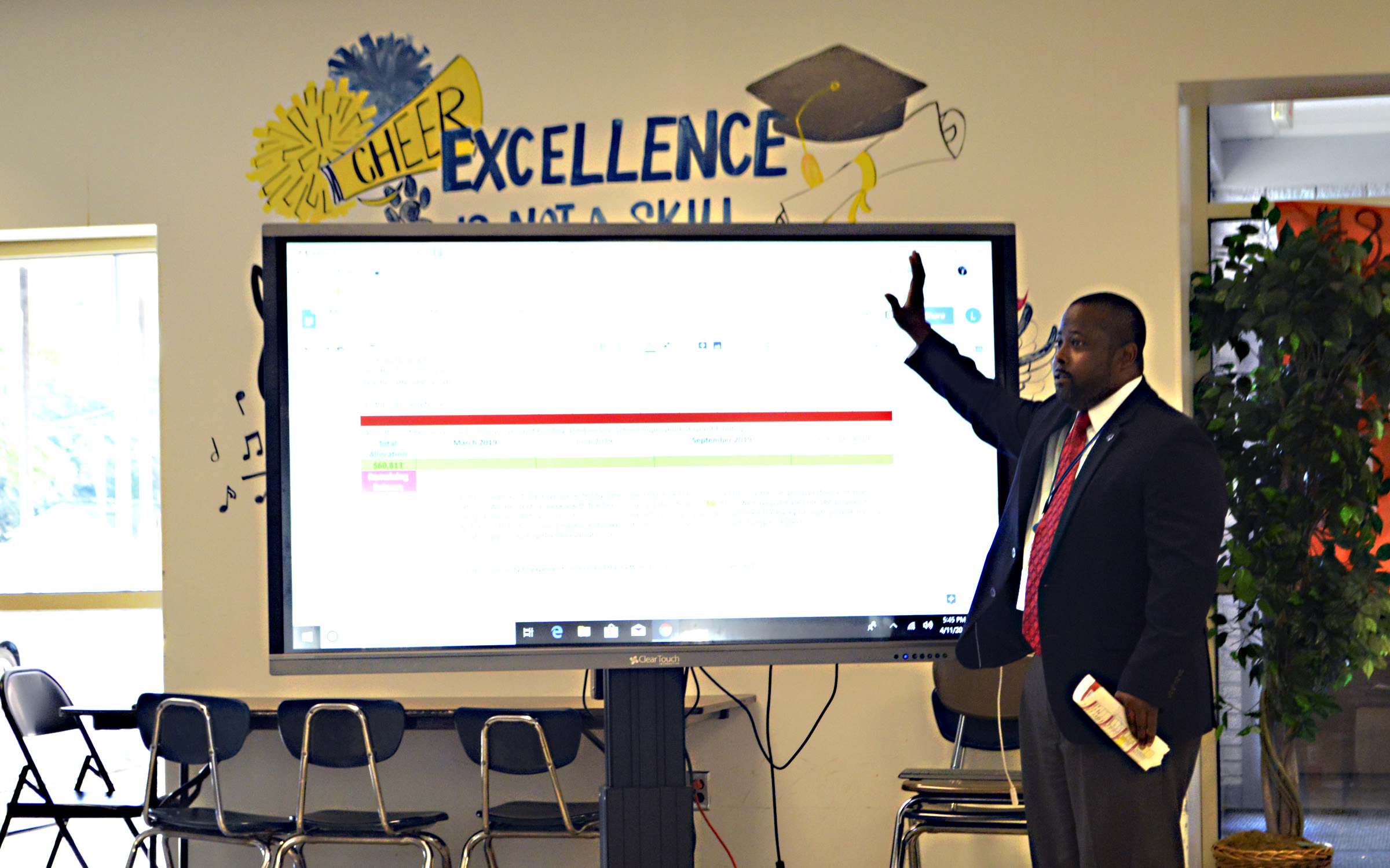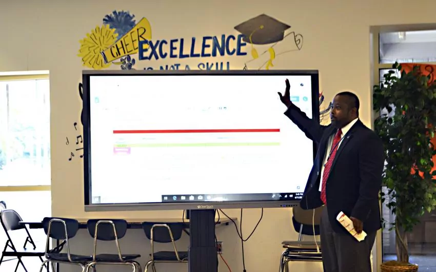 Jefferson Middle School and first-year principal Levi Robinson are working diligently to improve the school’s D rating and spent $50,000 on an outside firm to improve test scores, according to an update he gave the school board April 11.