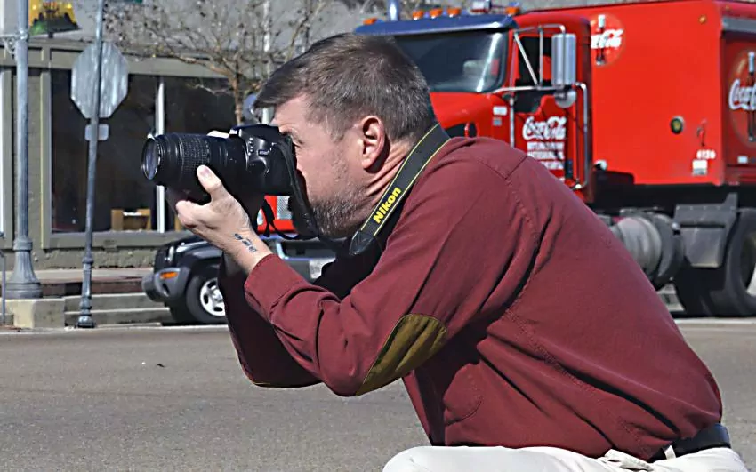 Pictured Above: The Columbian-Progress’ Managing Editor Mark Rogers takes a photo on Main Street. in downtown Columbia. | Photo by Joshua Campbell