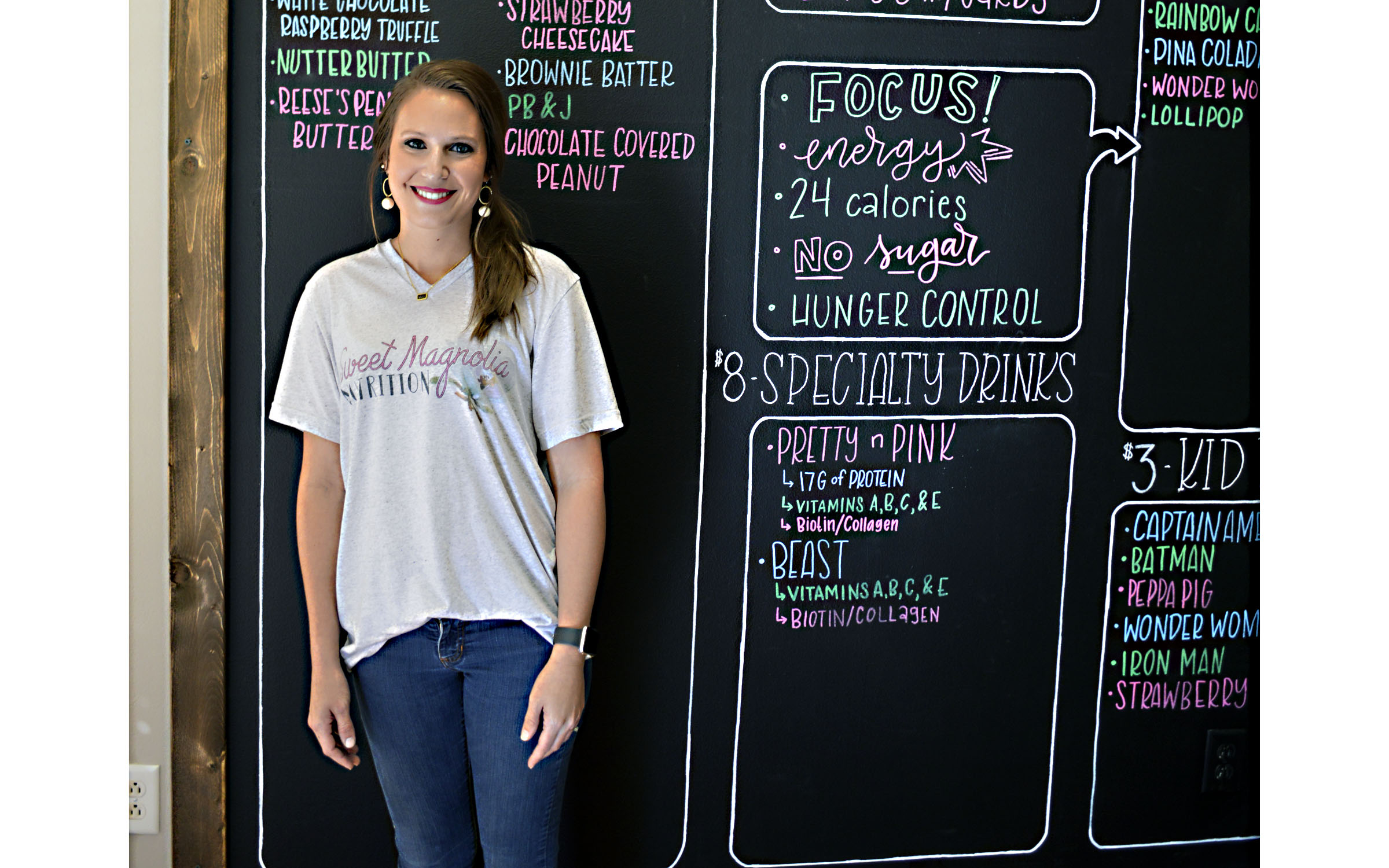 A: I’m the owner of Sweet Magnolia Nutrition. We sell meal-replacement shakes and healthy energy drinks. The meal-replacement shakes are for maintaining a healthy weight or losing weight. The loaded teas are 24 calories with no sugar and are like drinking an energy drink but a lot healthier version. It doesn’t give you a jittery feeling or that crash at the end of the day. There’s a lot of fast food places popping up, and we wanted to give Columbia a healthier option.