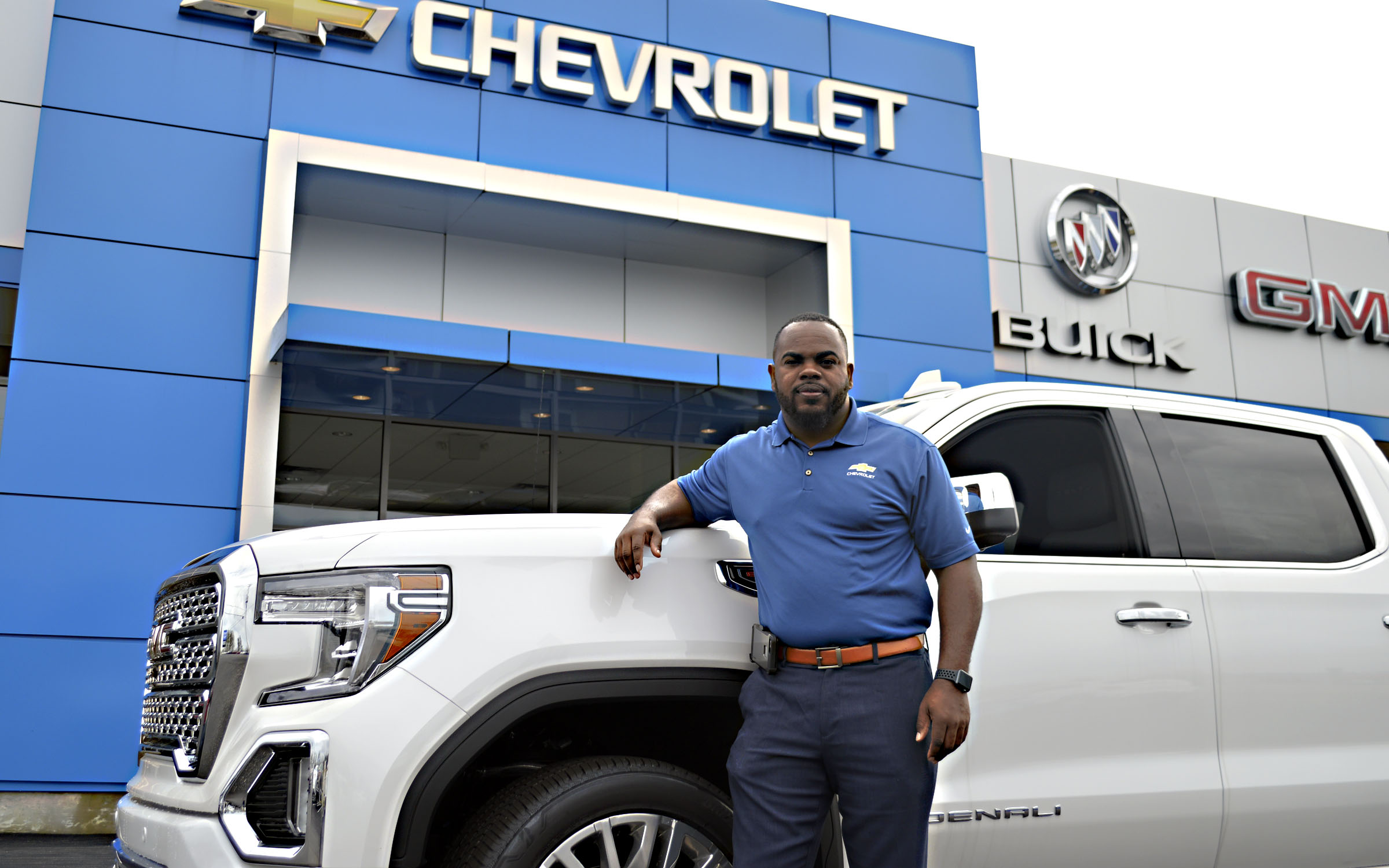 Pictured Above: Mack Grubbs Chevrolet Sales Manager Otis Smith poses with a 2019 GMC Denali, just one of the wide variety of trucks and cars at the Columbia dealership. Smith said he’s always had a heartbeat for sales. | Photo by Joshua Campbell
