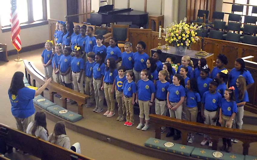 Pictured Above: The Columbia Elementary School Choir peforms during Friday’s World Day of Prayer service held at First United Methodist Church of Columbia. | Photo by Mark Rogers