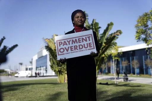 Talking about suffering in Ghana due to flooding, she held up a sign that said, “Payment Overdue."
