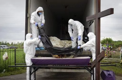 — Burial services were held for 11 more unidentified bodies found in Bucha, the town outside the Ukrainian capital that saw hundreds of people slaughtered under Russian occupation early in the war.