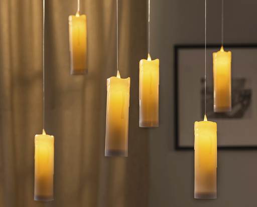 For a Hogwarts feel, hang some of Balsam Hill’s battery-operated “floating candles” over a party table or entry. The retailer also has stacked black pumpkin lights with cat faces, and glittery black twig trees.