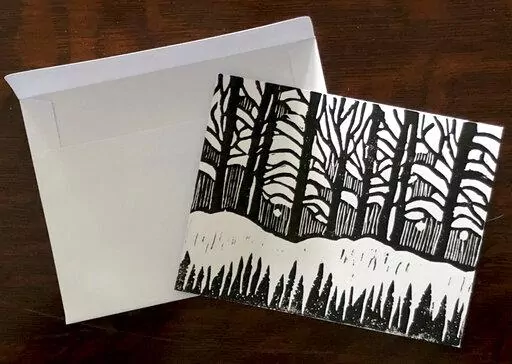 Christopher Paul Stevens, an artist in the Atlanta area, makes distinctive holiday cards from old-fashioned looking block prints of winter scenes, and sells them on Etsy.com at 111 Restoration and Vintage Goods. Judy A. Steiner, an artist in Ada, Michigan, makes cards featuring elegant Christmas trees formed from watercolor brushstrokes in shades of green and blue.