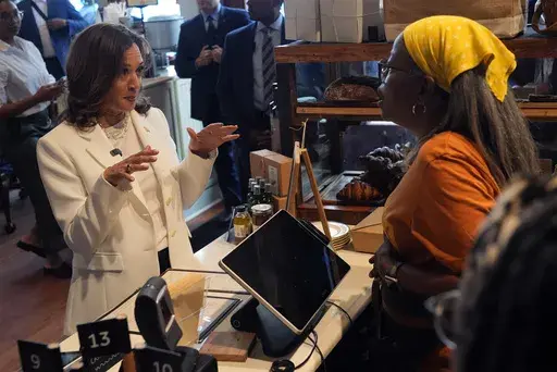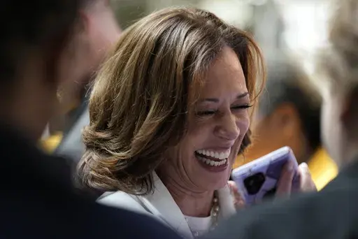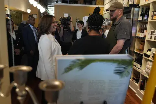 She also brushed off Republican Donald Trump’s questioning of her racial identity after he suggested falsely that she changed how she presents herself for political reasons and “happened to turn Black.” Harris, who is of Black and South Asian heritage, said Trump's suggestion was the “same old, tired playbook.”
