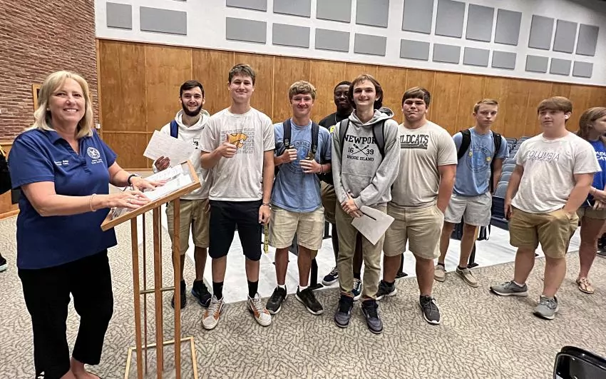 County election officials Kim Miller, Stacy Reagan, Mike Bennett and Arvin Broom also registered students who were 18 and older, and those students will be eligible to vote in the November general election.