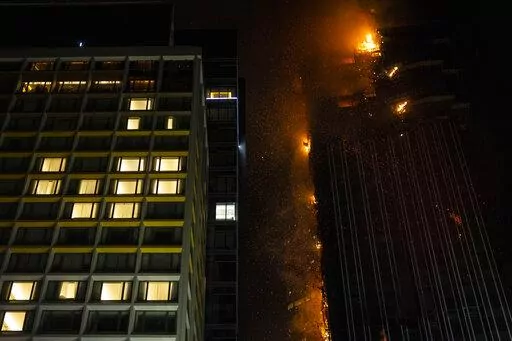 “Yesterday night was quite windy. The burning debris was blown towards five buildings by our count,” Keung said. “Two of the buildings, namely a hotel and a commercial building, saw part of their balconies catch on fire. Fortunately, our officers on standby quickly extinguished them.”