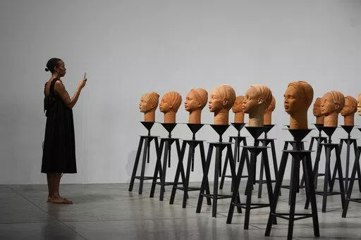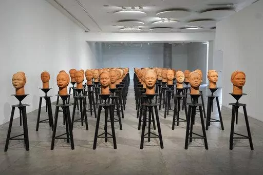 “These heads personify the absent girls, still missing, so that we don’t forget them, and raise the question of the rights of girls to a safe education on a global scale,” the artist told The Associated Press.