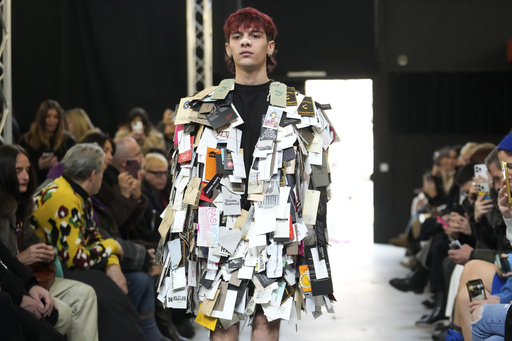 MILAN (AP) — The independent Italian fashion brand Simon Cracker denounced the luxury fashion system with an upcycled collection previewed during Milan Fashion Week on Sunday that riffed on what they see as bygone days of quality and creativity.