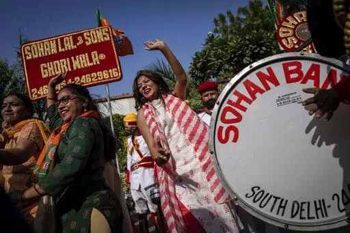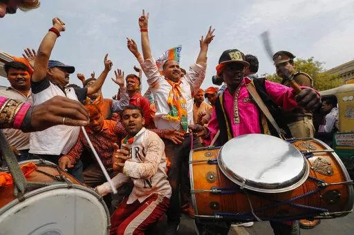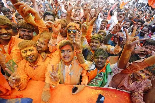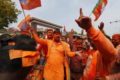 The BJP headquarters in Lucknow, Uttar Pradesh's capital, was festooned with garlands made of marigolds. Supporters set off fireworks, danced to the beat of drums and waved saffron flags.