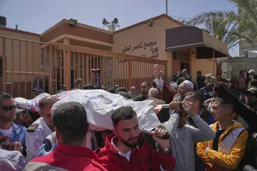 Dozens gathered at a funeral for some of the 15 emergency responders killed by Israeli fire during a ground operation in Rafah last week. The International Federation of Red Cross and Red Crescent Societies called it the deadliest attack on its medics in several years.