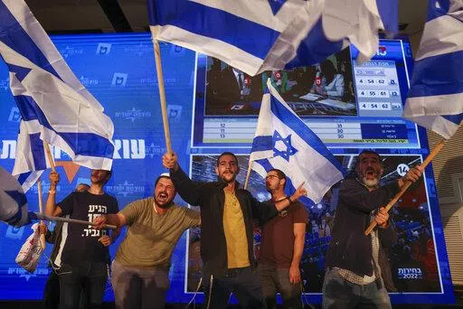 The night’s strongest showing was by far-right lawmaker Itamar Ben-Gvir’s Religious Zionism, which emerged as the third-largest party. At an all-male campaign gathering in Jerusalem, religious men wearing Jewish skullcaps and waving Israeli flags danced in celebration.