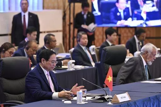 TOKYO (AP) — Leaders from Japan and the Association of Southeast Asian Nations, at a special summit in Tokyo on Sunday, adopted a joint vision that emphasizes security and economic cooperation while respecting the rule of law, amid growing tensions with China in regional seas.