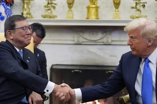 WASHINGTON (AP) — President Donald Trump said Friday he wants to slash the U.S. trade deficit with Japan as he welcomed Japanese Prime Minister Shigeru Ishiba to the White House for their first face-to-face meeting.