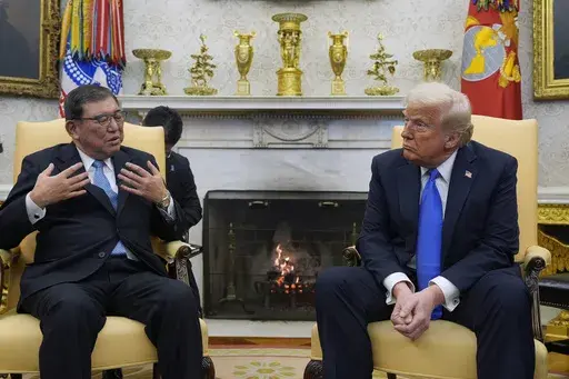 He also said he was excited, before coming to Washington, about meeting a television celebrity like Trump. Ishiba said of Trump that “on television, he is frightening,” but during their Oval Office meeting the president was actually “very sincere." He added that he didn't come to “suck up” to the president.