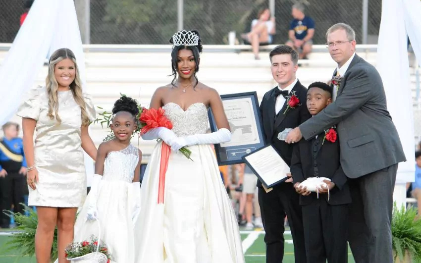 West Marion’s homecoming court includes, from left, Seventh Grade Maid Katya Blanco, Freshman Maid Chantelle Smith, Junior Maid Breanna Conerly, Football Maid Khallada Varnado, Homecoming Queen Daleigh Crozier, Maid of Honor DeAndrea Dexter, Senior Maid Lillian Pigott, Sophomore Maid Iyana Willis and EighthGrade Maid Maycee McKenzie. | Photos by Joshua Campbell
