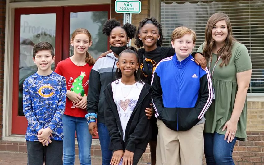 The Columbia Elementary School Paw Printz staff took a field trip to The Columbian-Progress Friday to learn about how the newspaper is run. The staff enjoyed taking pictures, making advertisements and more. From left are Patton Giliam, Kayleigh Hough, Mariah Rawls, Madison Expose, Trinity Davis, Samuel Robinson and teacher Kim Davis.