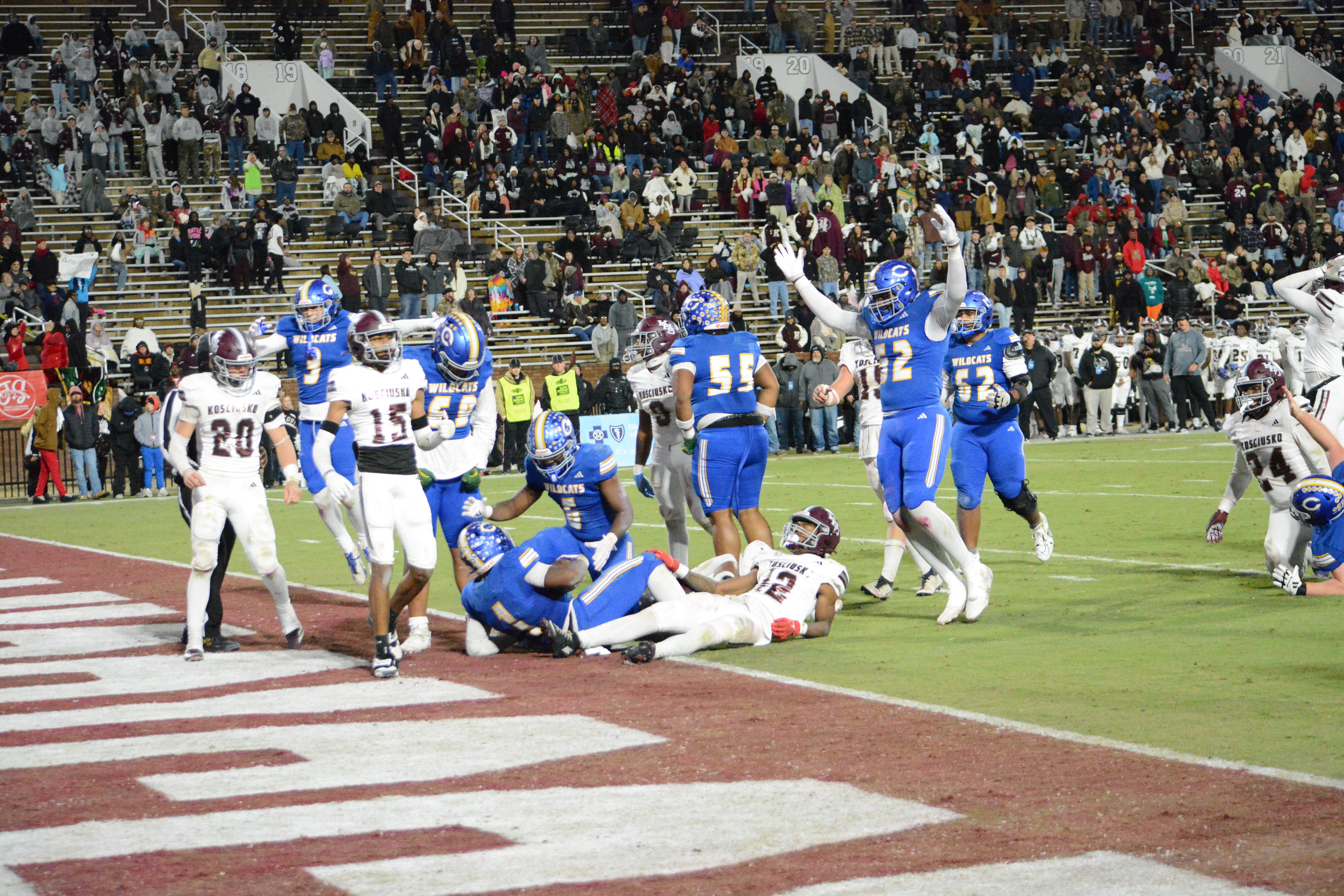 That's when Daniels took over. Two plays after starting the drive with a 12-yard run, he broke free for 20 yards and had an additional 15 tacked on thanks to Kosciusko hitting him out of bounds. The Wildcats got inside the 10-yard-line with Lewis catching a screen pass from Peters to pick up 11 yards. Three plays later, Lewis took a handoff up the middle and powered through a pair of Kosciusko defenders at the 1 to get into the end for the game-winning touchdown.