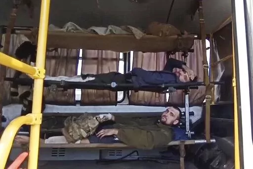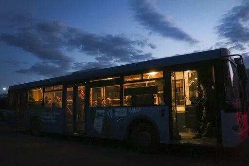 Seven buses carrying an unknown number of Ukrainian soldiers evacuated from the Mariupol steel plant were seen arriving Tuesday at former penal colony No. 120 near Olenivka.