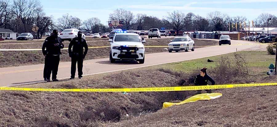 The body was discovered before 9 a.m. Saturday in a drainage ditch next to a U.S. 82 frontage road, not far from its intersection with Garrard Avenue. The ditch where the body was found lies between two lodging facilities — Travel Inn and SureStay Plus Hotel.