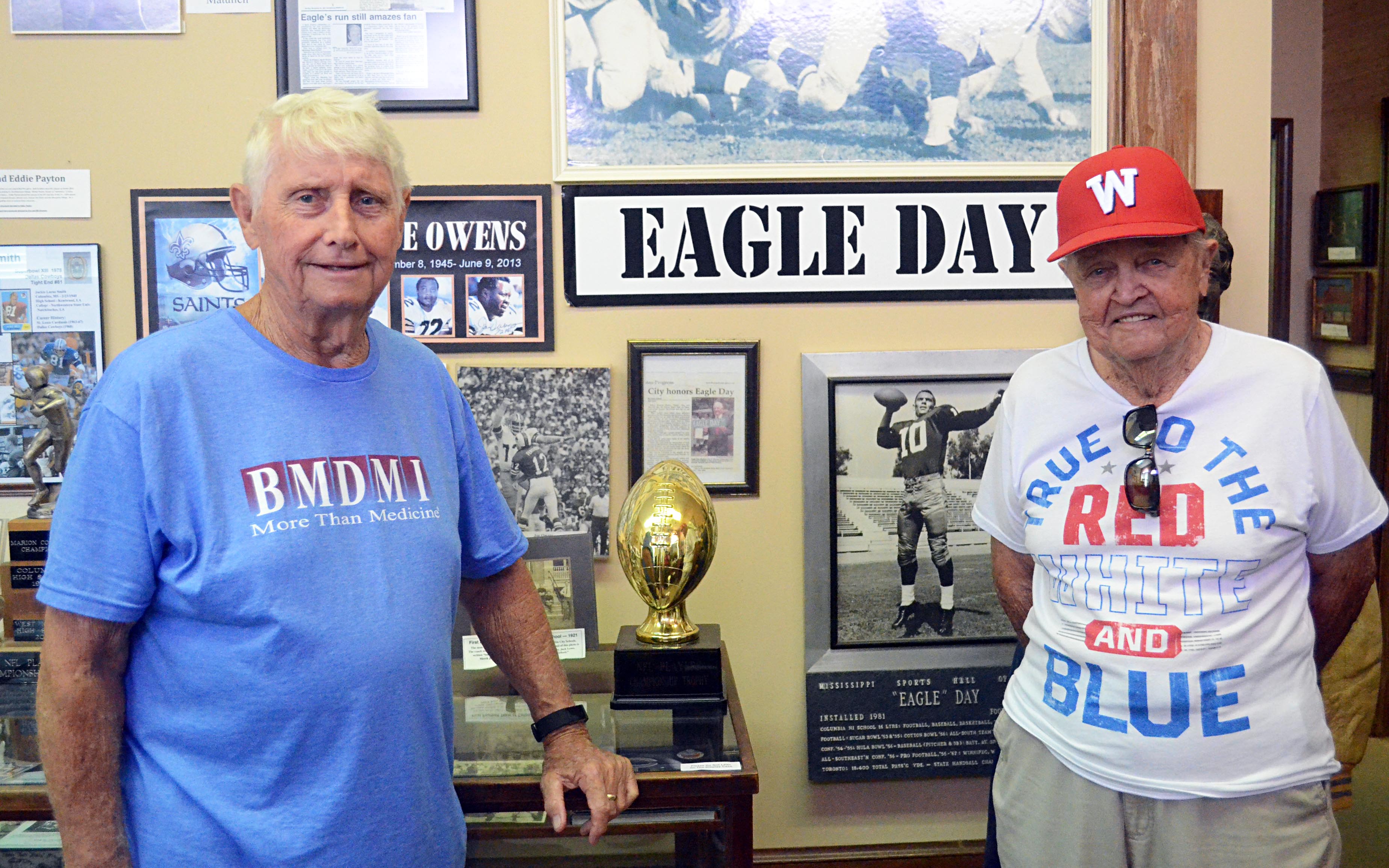 “The first thing we thought about was honoring the winning team each year. Then Eagle Day came up with the idea of a Heisman Trophy to honor the most valuable player,” Pounds recalled. “The coaches would get together, Hilton would get together and I would get together, and this was the most valuable player in the county.”