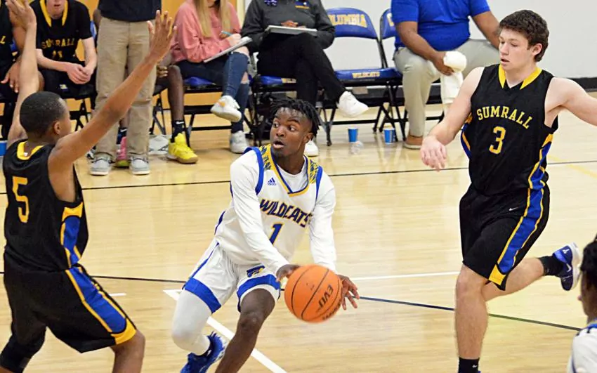 For much of the season, the Columbia Wildcats struggled to establish an identity with so many players unavailable after earning football scholarships. But over the past weeks, they have improved dramatically in the half court both offensively and defensively, and it culminated Tuesday night in Columbia beating Bay 48-45 in the first round of the Class 4A playoffs.