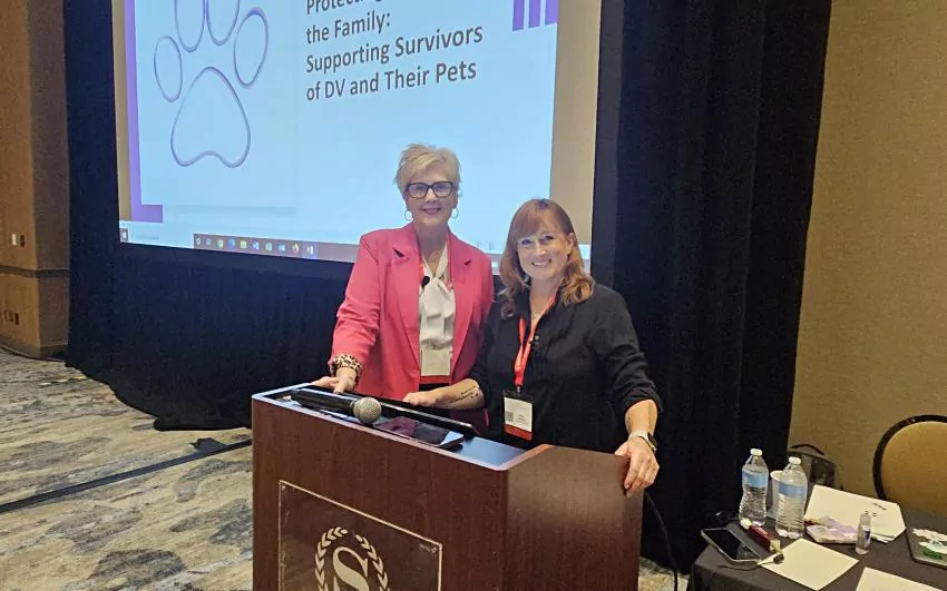 DAFS Executive Director Becky Stewart just returned from Dallas, Texas, where she was invited to speak during an international conference about the agency’s Domestic Violence shelters becoming not only pet friendly, but completely pet inclusive.