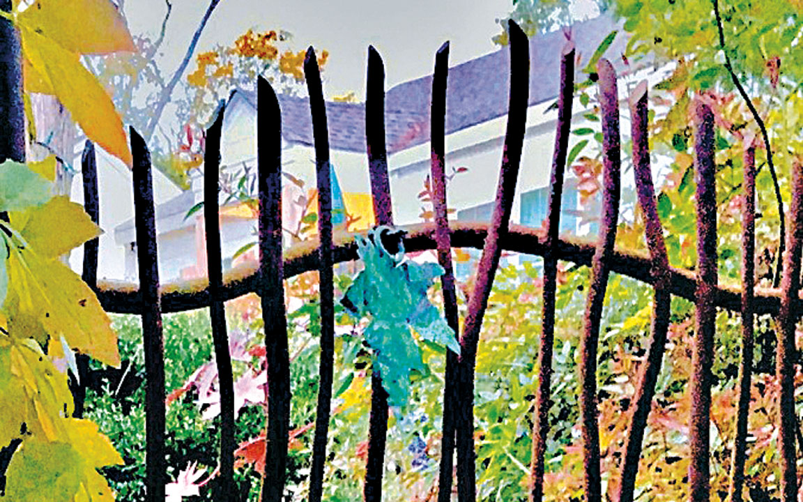 Though some still stand, during the two World Wars many once-fashionable Victorian-era iron fences were pulled up and melted down into war materiel. After that, largely because of the stylistic influence of wide-open suburbia and its wall-to-wall lawns, fences fell out of favor; older ones were eventually removed, new ones never put up. As we retreated into airconditioned dens and private back yards, they disappeared (with spacious front porches).