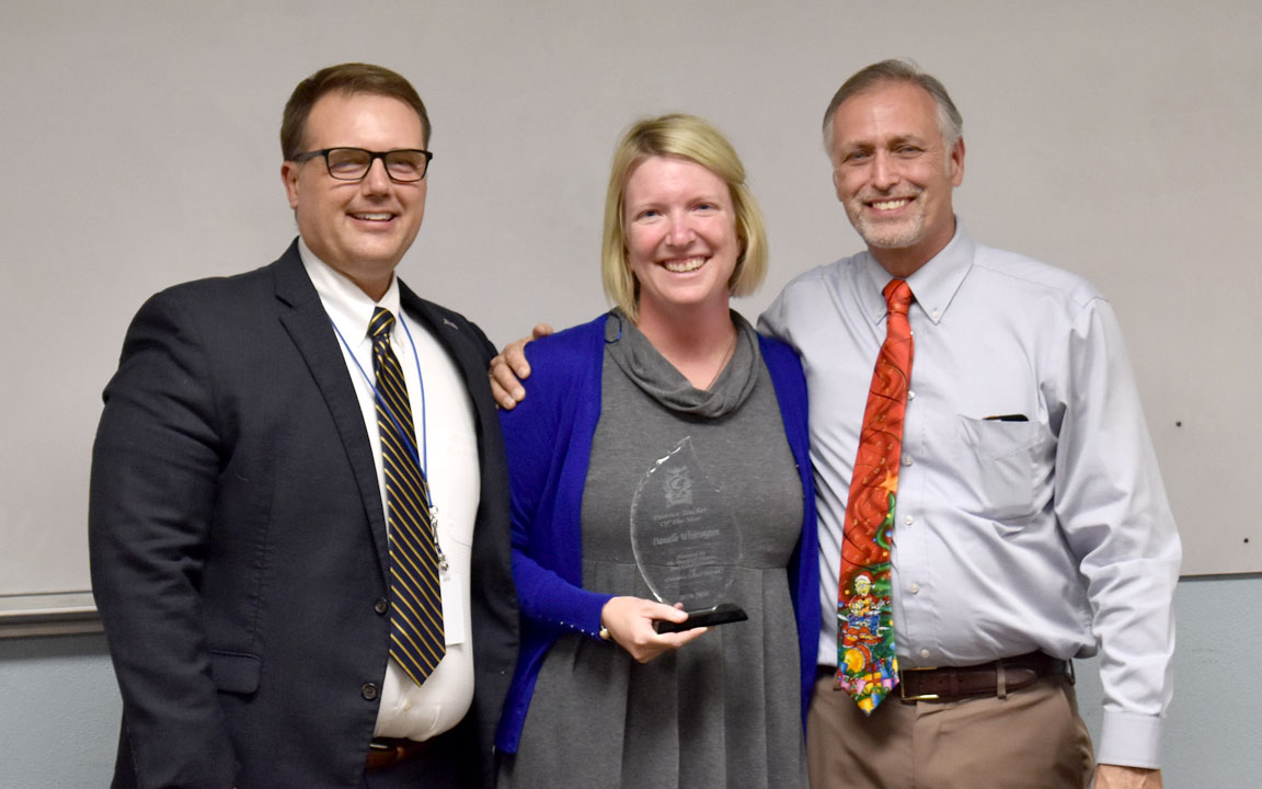 Later in the presentation Superintendent Jason Harris gave the District Teacher of the Year Award to Whittington.