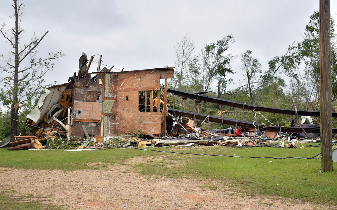 The tornado struck on April 19 in Sandy Hook, Hub and Pine Burr. The storm killed one person and damaged at least 120 homes, destroying 20. The Southwest Marion Volunteer Fire Department station on Hurricane Creek Road was also leveled, and some 40,000 yards of debris was piled on the county's rights-of-way after the storm did an estimated $1.4 million in timber damage.
