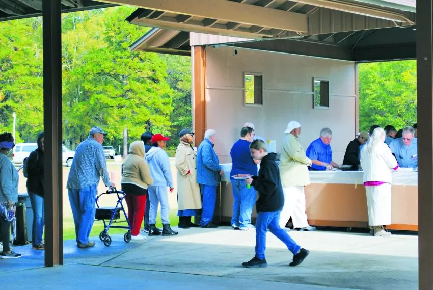 The event was held at the Columbia Water Park with estimates of 140 to 150 people attending. More than 400 plates of ham, sweet potatoes, dressing and more were handed out in the big pavilion despite the chilly air.