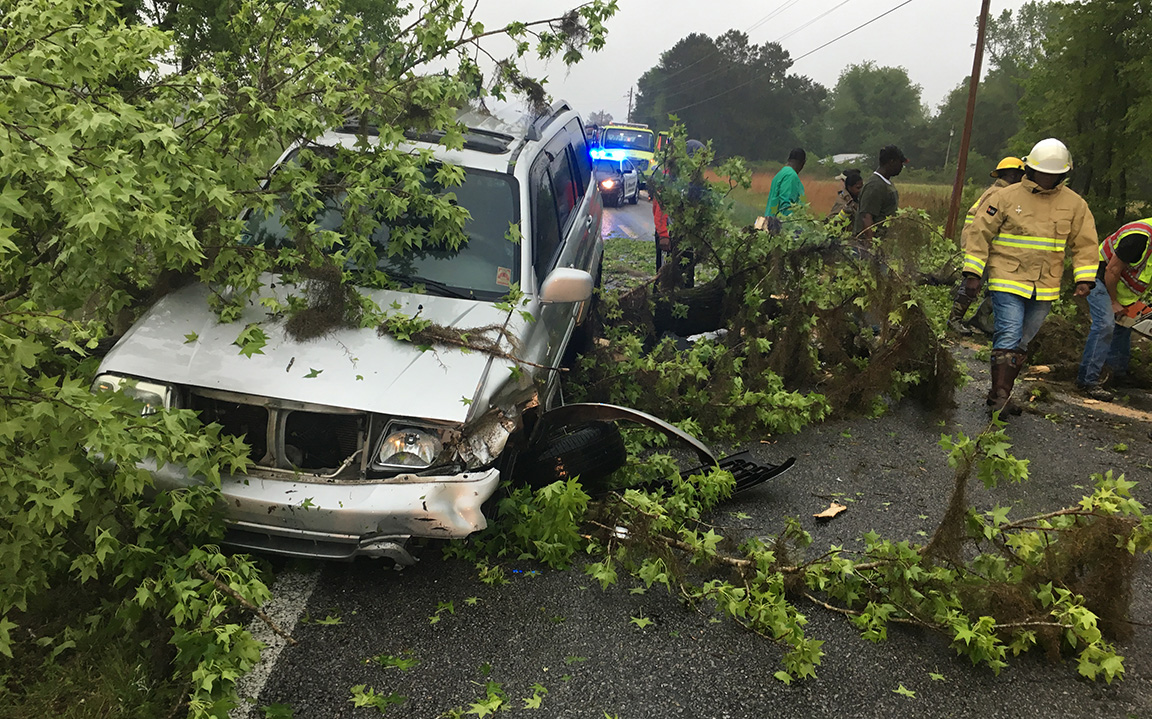 Firefighters from South Marion, Pine Burr and Foxworth responded shortly after 10 a.m. to a report of a tree that had fallen on a car on Mississippi 43 near Mail Route Road.