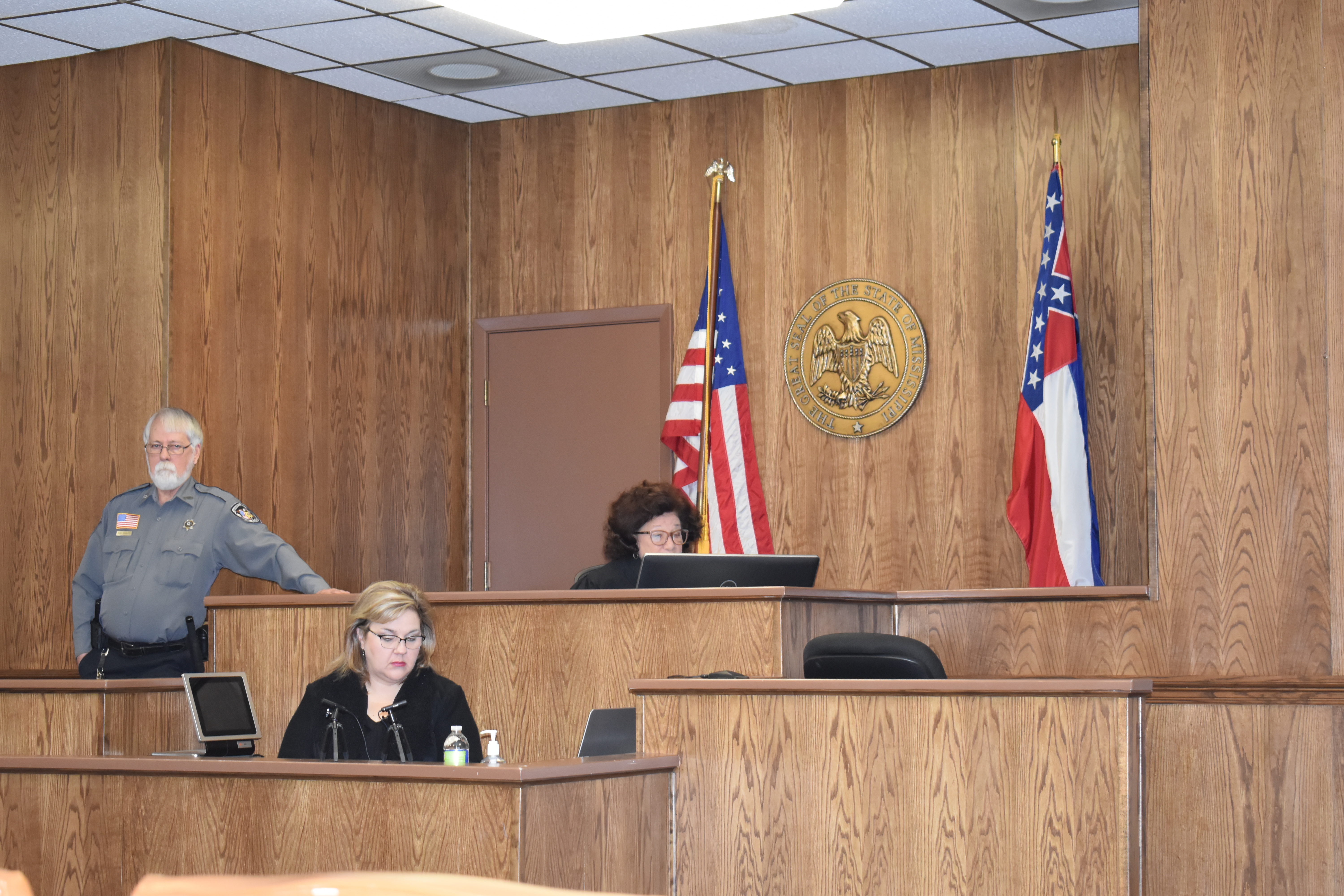 Chancellor Deborah Gambrell presided at the packed hearing this morning. Gambrell asked anyone who objected to stand, and nearly everyone in the seated section rose. The official count was 35 people who stood.