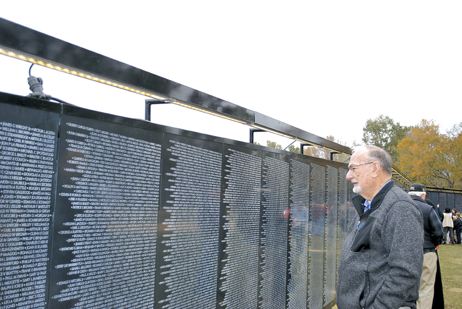 Vietnam veteran Dick Bounds of Hattiesburg was searching on the Wall for names of his comrades Thursday. He said he could remember the full name of nine of them, but he knows there are at least 20-30 more names of soldiers he knew.