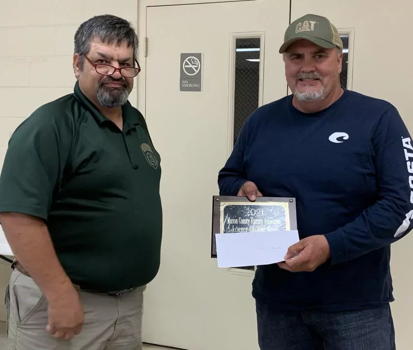 Cary Williams holds a plaque he received for all of his years of dedication to the Marion County Forestry Association.