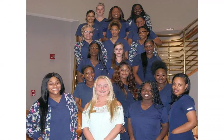 The following Pine Belt area students graduated June 20 from the Certified Nurse Aide course offered by Pearl River Community College at the Lowery Woodall Advanced Technology Center in Hattiesburg. Front row, from left, are Zaria Shelby, Adison King, instructor; LaGraciea Williams and Terrill McLaurin; second row, Chloe Adams, Shalethia Bridges and Kirra Lott; third row, Dynasty Smith, Savannah Simmons and Charlisha Standley; fourth row, Theresa Bethel, Haylee Reid and Olivia Bridges; fifth row, Mariah Crosby, Chrystal Wilson and Tyanna Nelson; back row, Robin Collins and Tanoshea Keyes. Not pictured are Antonia Foxworth, Karen McNair-Hart, Jada Hill, DorRansler Holloway, Kamecia Love, Ja’Tifah Newton and Madison Payne. Enrollment is currently underway for August and September 2019 classes. For information, call (601) 554-4646 or visit the Woodall Advanced Technology Center. | Photo submitted