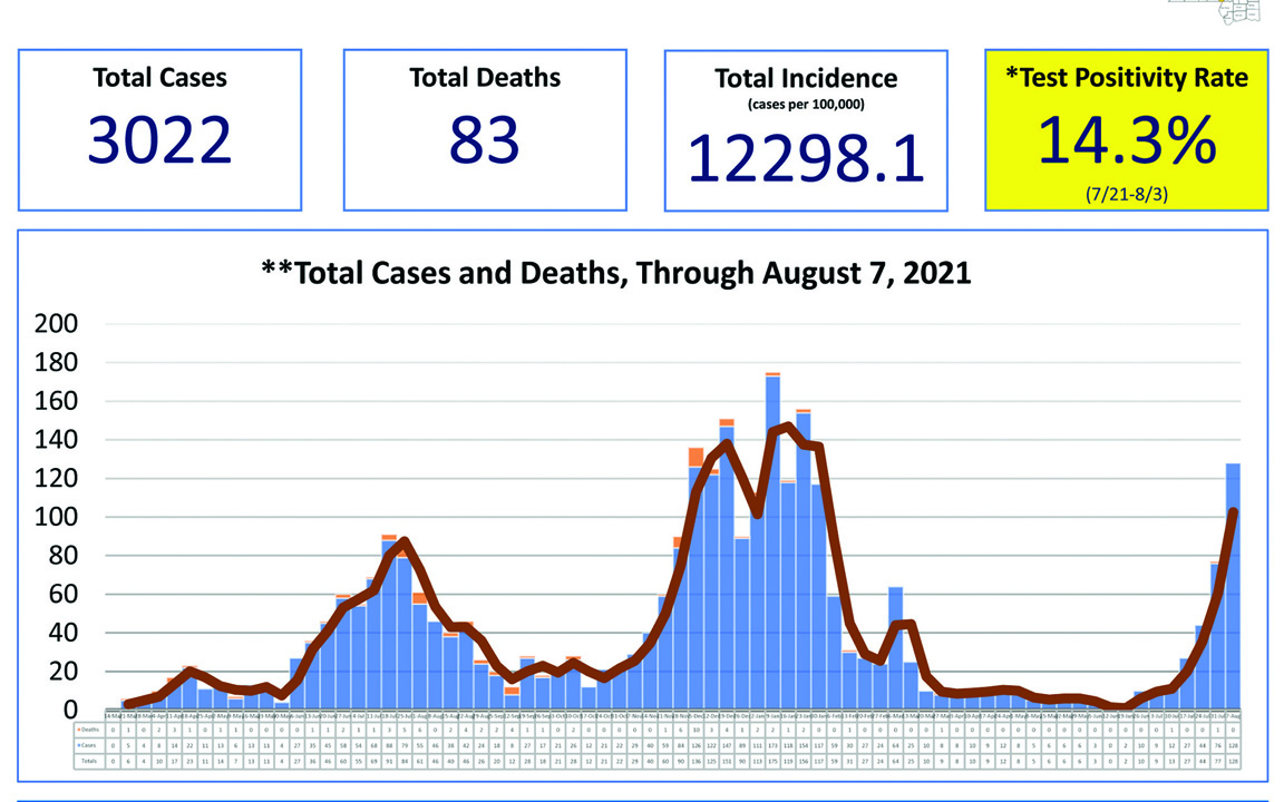 To show the rapid rate of the virus spreading, the week of Aug. 3 through Aug. 9, a total of 18,479 new cases were confirmed. One week later, the number has escalated to 23,760 cases, an increase of more than 5,000 cases. The total number of deaths, more than doubled from the previous week. This week’s number is 195 compared to 95 last week.