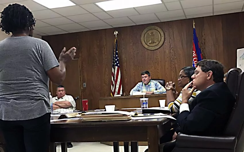 Pictured Above: Stephanie Wilson addresses the Columbia Board of Aldermen Tuesday about flooding on Hendricks Street near Dukes Avenue. Mayor Justin McKenzie said the city is working to correct the issues. | Photo by Mark Rogers