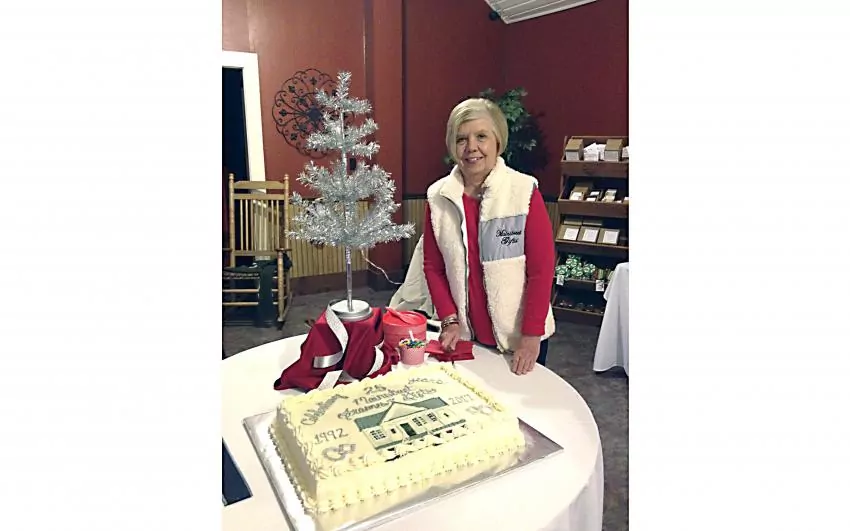 Pictured Above: Judy Bean stands by a custom cake Friday made for the 25th anniversary of Mainstreet Gifts and More. | Photo by Kim Gingell