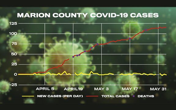 As of press time Thursday, there have been 116 cases here, up just two from a week earlier. Nine people from Marion County have died.