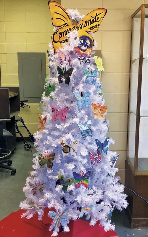 Inside the library each year at Christmas time is a tree with specially hand-painted ornaments to match the personality of the child. The ornaments and also atop of the gazebo are butterflies. The butterflies are symbolic because like a butterfly, a child’s life hasn’t ended, it only changed.