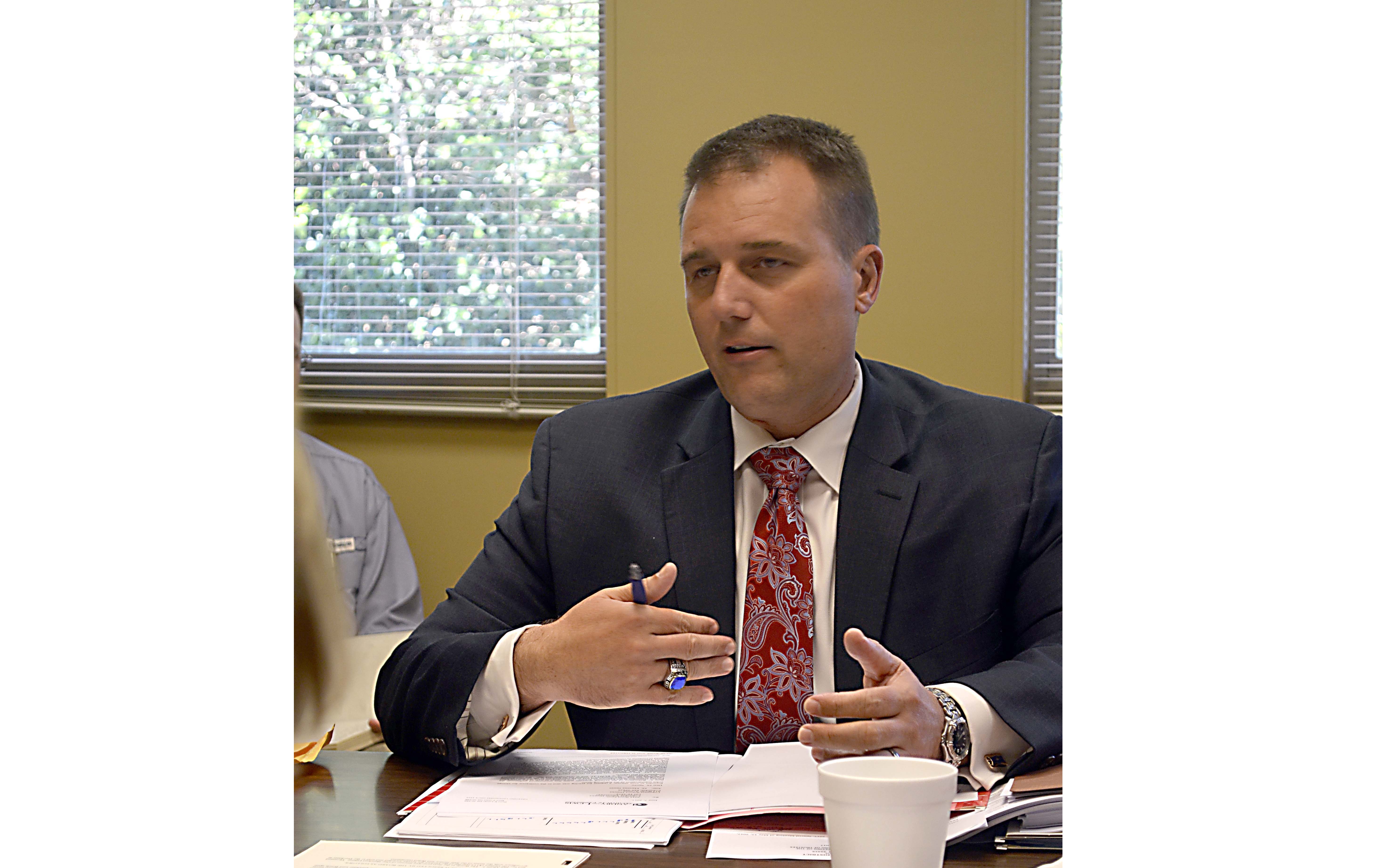 Pictured Above: New Superintendent Jason Harris discusses items with the Columbia School District Board of Trustees. | Photo by Mark Rogers