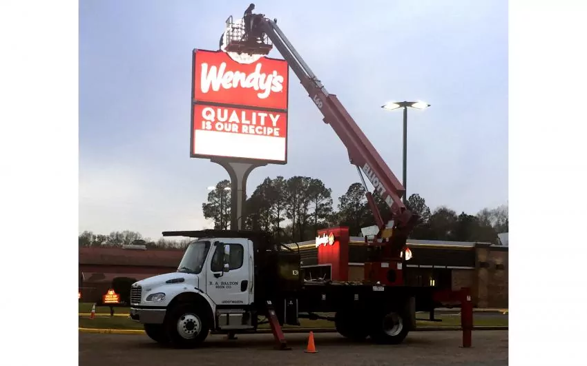 Pictured Above: Work is done Monday on the sign at Wendy’s on U.S. 98. After renovations, it’s slated to reopen Monday, March 18. | Photo by Ashley Smith
