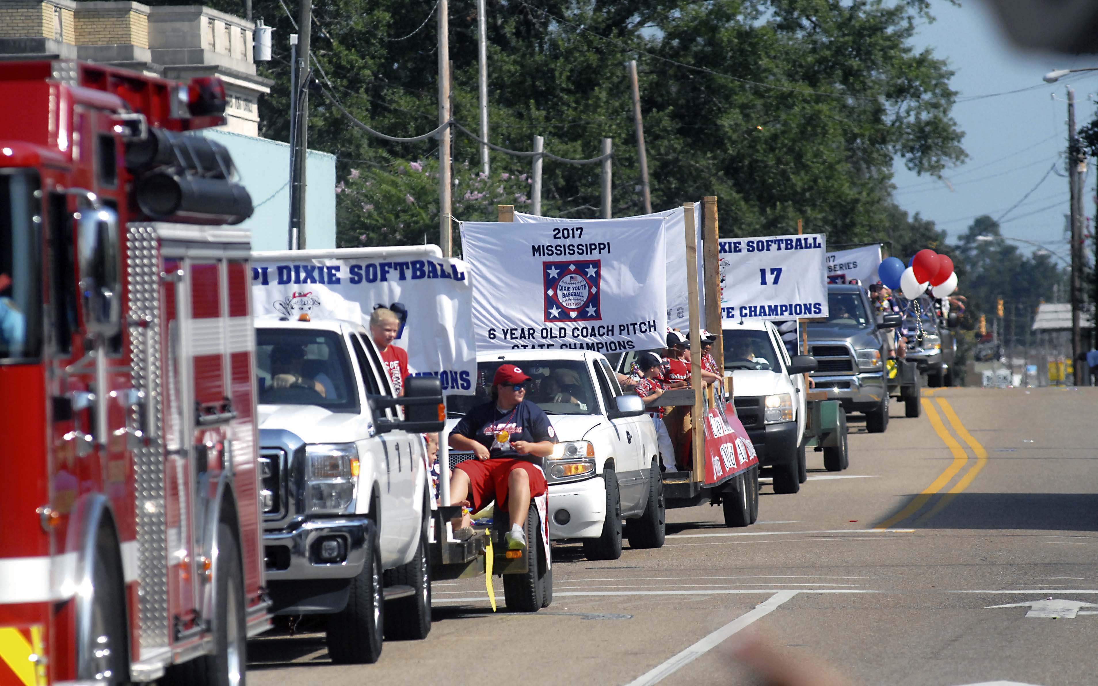 Pictured Above: World Series team floats make their way down Main Street during Saturday’s parade. | Photo by Mark Rogers